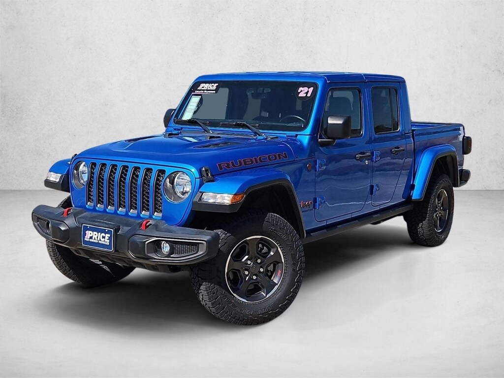 BMW of The Woodlands is pleased to be currently offering this 2021 Jeep Gladiator Rubicon with 55,667mi. This Jeep includes: ENGINE: 3.6L V6 24V VVT UPG V6 Cylinder Engine Gasoline Fuel TRAILER TOW PACKAGE Back-Up Camera Tow Hitch BODY COLOR 3-PIECE HARD TOP Targa Roof Sliding Rear Window Rear Defrost Convertible Hardtop REMOTE PROXIMITY KEYLESS ENTRY Keyless Start Power Door Locks Keyless Entry TRANSMISSION: 8-SPEED AUTOMATIC (850RE) 8-Speed A/T Transmission w/Dual Shift Mode A/T COLD WEATHER GROUP Heated Steering Wheel Heated Front Seat(s) BODY COLOR FENDER FLARES (2-PIECE) BLACK, PREMIUM CLOTH LOW-BACK BUCKET SEATS Cloth Seats Bucket Seats HYDRO BLUE PEARLCOAT QUICK ORDER PACKAGE 24R 4:1 ROCK-TRAC HD FULL TIME 4WD SYSTEM 8.4 RADIO HD Radio Navigation System Auto-Dimming Rearview Mirror AM/FM Stereo Satellite Radio Bluetooth Connection Premium Sound System Telematics Requires Subscription *Note - For third party subscriptions or services, please contact the dealer for more information.* Outstanding craftsmanship and artisanal refinements abound with this Jeep Gladiator Rubicon. Take home this Jeep Gladiator Rubicon, and you will have the power of 4WD. It's a great feature when you need to drive over tricky terrain or through inclement weather. Low, low mileage coupled with an exacting maintenance program make this vehicle a rare find. With an efficient and easy to use navigation system, this Jeep Gladiator will help get you from Point A to Point B in no time flat. Being part of our BMW of The Woodlands family brings you lots of support and friendly service. We offer free shuttle service in The Woodlands area and a comfortable waiting area with complimentary Wi-Fi, drinks and snacks. ***** Well buy your car. No purchase necessary. *****