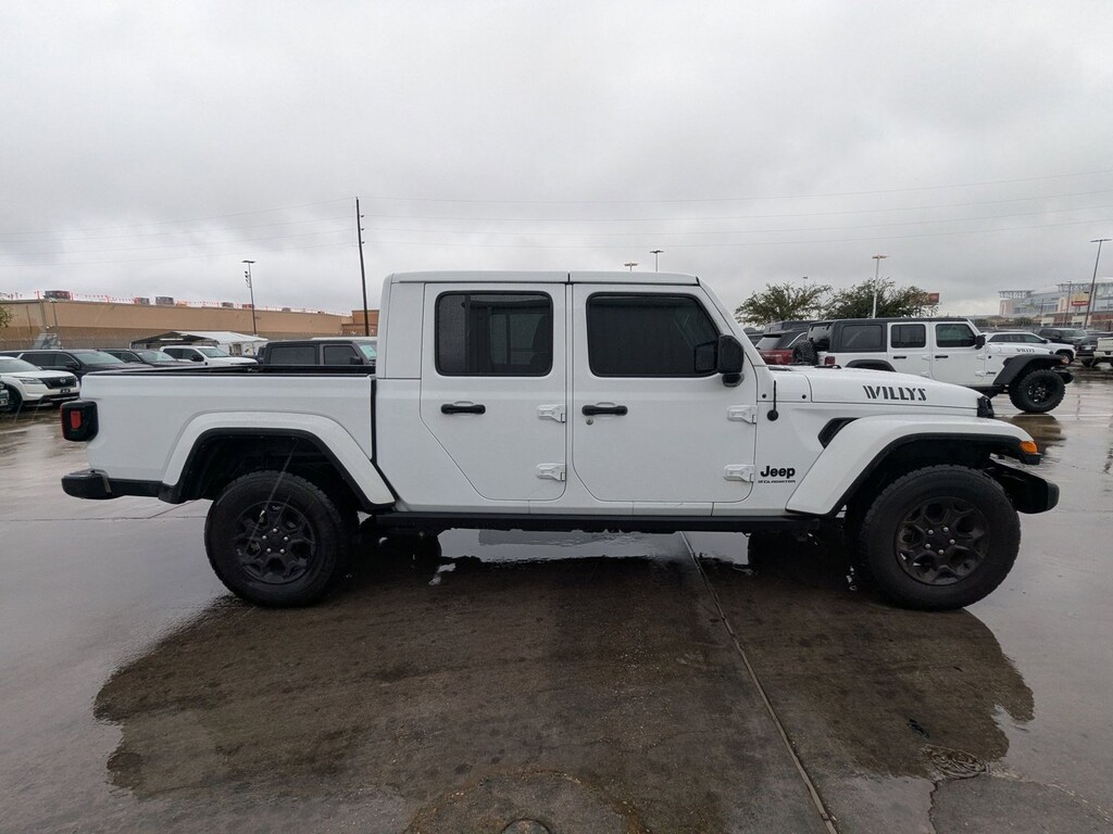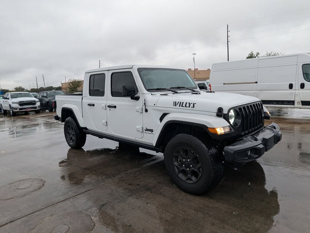 AutoNation Chrysler Dodge Jeep Ram Houston has a wide selection of exceptional pre-owned vehicles to choose from, including this 2023 Jeep Gladiator. This Jeep includes: VALUE PACKAGE Targa Roof Remote Engine Start Sliding Rear Window Heated Steering Wheel Leather Steering Wheel Rear Defrost Convertible Hardtop Heated Front Seat(s) BLACK, LEATHER TRIMMED BUCKET SEATS (YL) Leather Seats Bucket Seats ENGINE: 3.6L V6 24V VVT UPG V6 Cylinder Engine Gasoline Fuel BRIGHT WHITE CLEARCOAT MOPAR GRAB HANDLE KIT QUICK ORDER PACKAGE 24W WILLYS Multi-Zone A/C Automatic Headlights Driver Vanity Mirror Passenger Vanity Mirror A/C Power Mirror(s) Power Windows Climate Control Privacy Glass Universal Garage Door Opener Heated Mirrors Security System Daytime Running Lights Satellite Radio Power Door Locks Keyless Entry Passenger Illuminated Visor Mirror Driver Illuminated Vanity Mirror Requires Subscription TRANSMISSION: 8-SPEED AUTOMATIC (850RE) 8-Speed A/T Transmission w/Dual Shift Mode A/T *Note - For third party subscriptions or services, please contact the dealer for more information.* This 4WD-equipped vehicle will handle majestically on any terrain and in any weather condition your may find yourself in. The benefits of driving an Four Wheel Drive vehicle, such as this JeepGladiator Willys, include superior acceleration, improved steering, and increased traction and stability. Just what you've been looking for. With quality in mind, this vehicle is the perfect addition to take home. Based on the superb condition of this vehicle, along with the options and color, this Jeep Gladiator Willys is sure to sell fast.